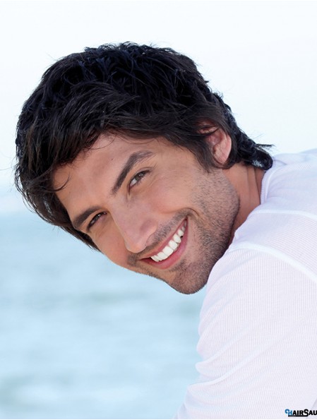 100% Hand Tied Straight Synthetic Black Mens Wigs