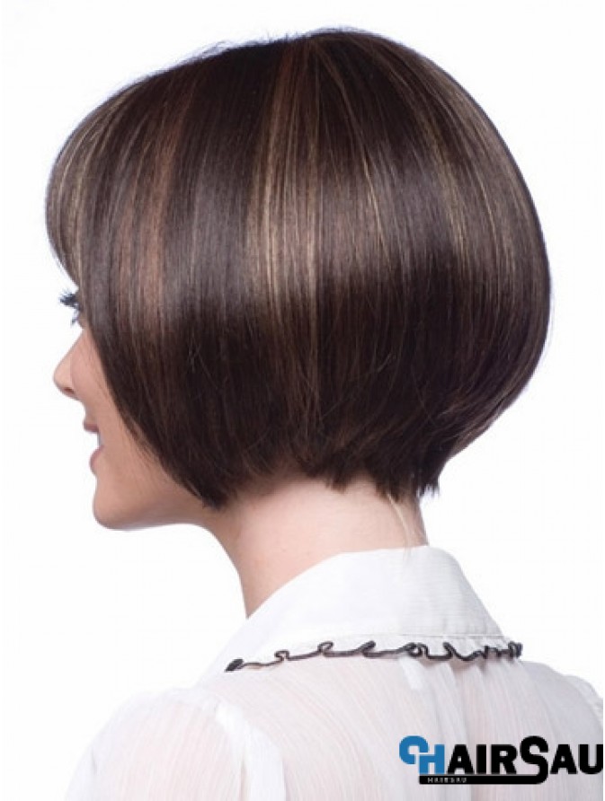 Cheap Synthetic Lace Wigs Chin Length Bobs Cut Brown Color