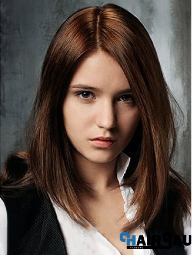 Front Straight Human Hair Shoulder Length Straight Style Auburn Color