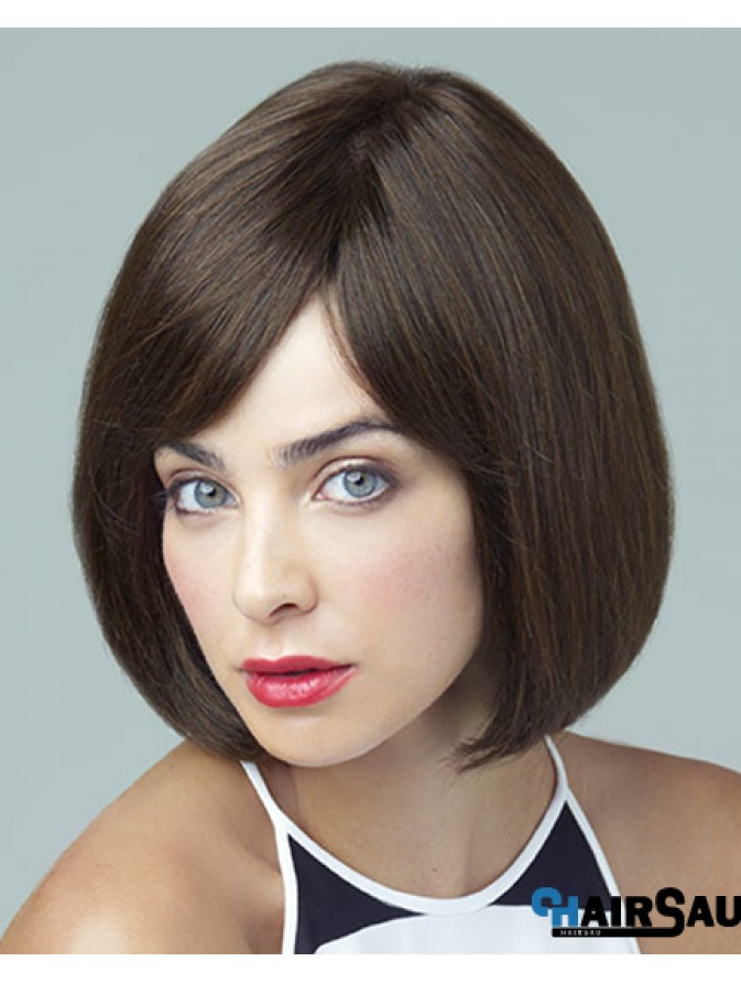 Remy Human Brown Straight Bobs 10 inch Large Cap Monofilament Wigs