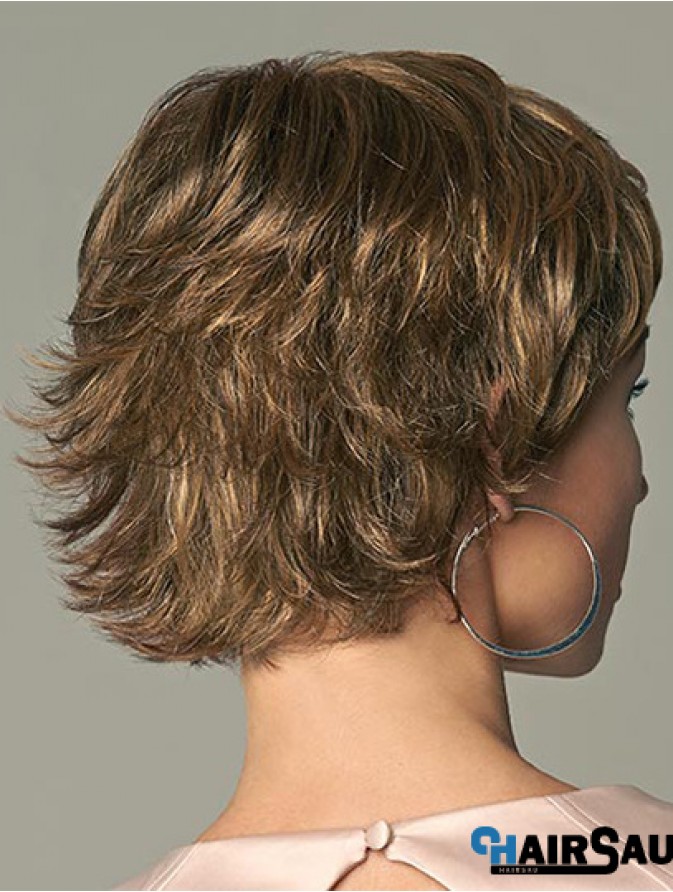Online 4 inch Wavy Brown Layered Short Wigs