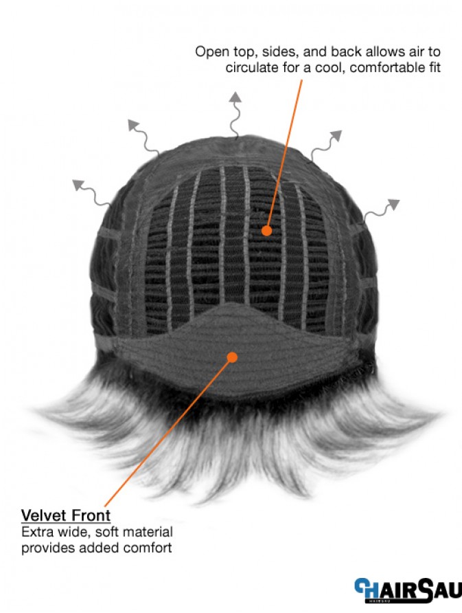 Capless wigs allow your head to stay cooler than solid capped wigs. This is due to the fact that it is made with less hair and the specific capless construction allows for some air flow to the head and scalp. There are also adjustable straps or hooks at the nape of the neck to secure the wig in place.