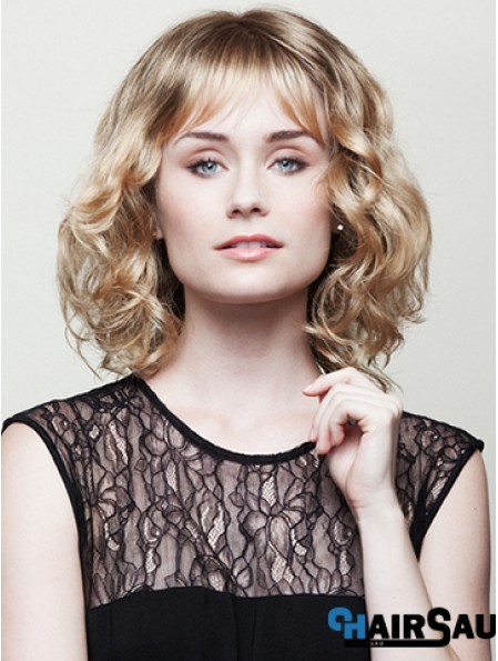 Shoulder Length Wavy With Bangs Gorgeous Blonde Lace Front Wigs
